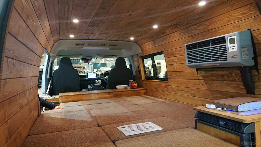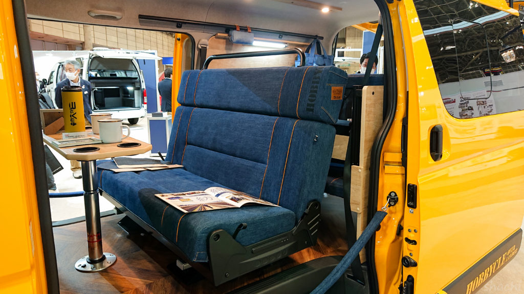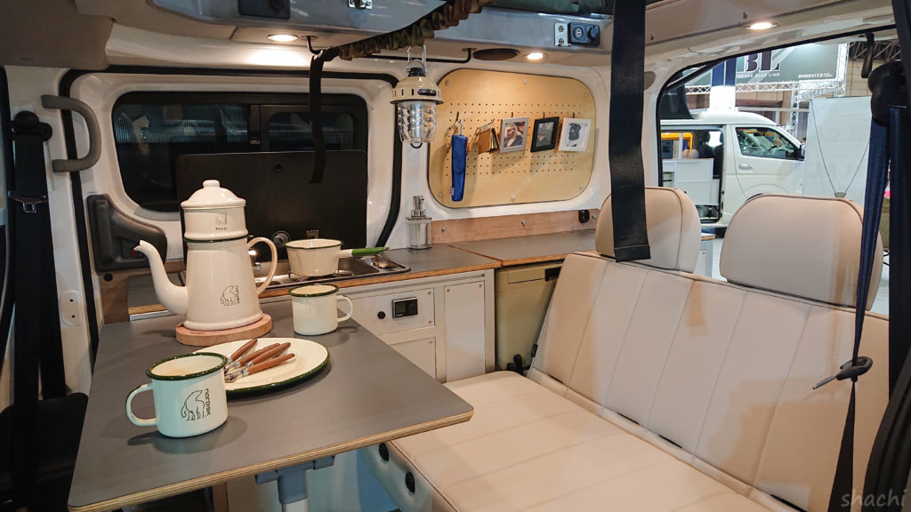 The car itself is quite small compared to a Hiace, but there were many light car campers on display at various booths.